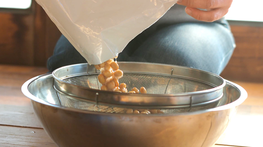 水煮パックは湯せん20分ですぐに潰せる状態の大豆になりますので大豆を洗う、水に浸ける、煮るの3手間がはぶけてお手軽に味噌仕込みができます。